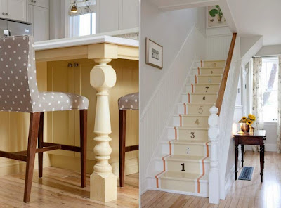The polka dot vinyl on the chairs was chosen to be kid proof, and the stairs were painted to help the kids learn to count. Why not?